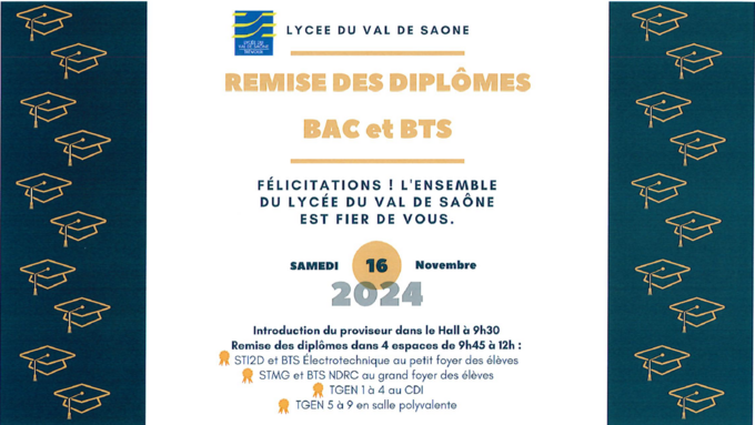 Cérémonie remise des diplômes du bac et du BTS samedi 16 novembre 2024 9h45-12h