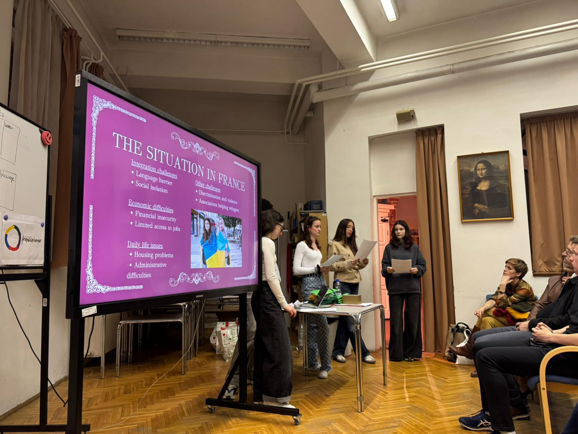 Ainsi, les élèves avaient préalablement réalisé des entretiens avec deux professeures italiennes, l’Association d’aide aux Demandeurs d’Asile Saône Vallée, l’association Amitiés France Hongrie Rhône-Alpes et l’association Lyon Ukraine pour leurs productions.