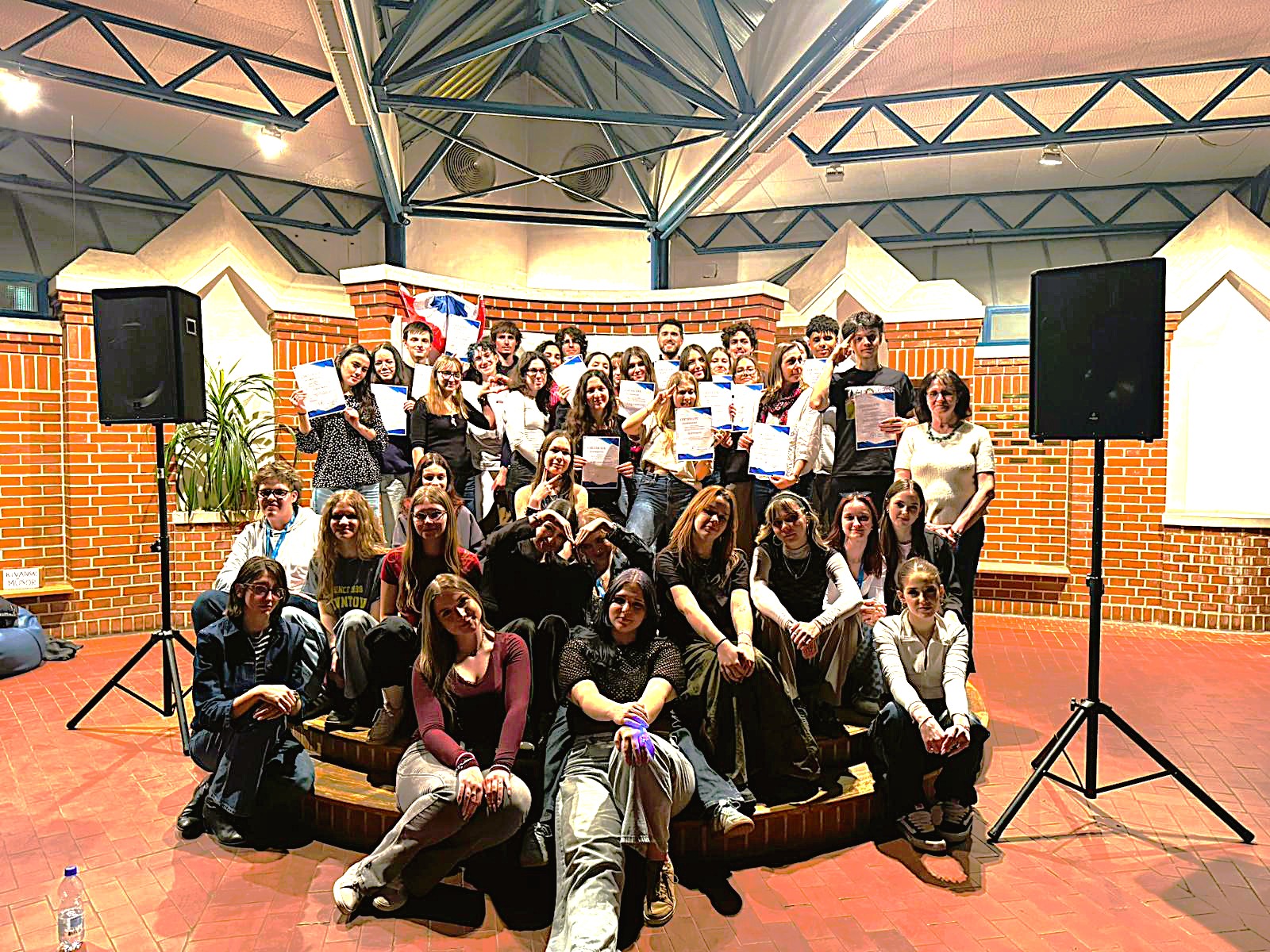 Accueillis au lycée, ils bénéficièrent d’un programme taillé sur mesure dès le premier jour : séance de zumba avec leurs partenaires, cours adaptés à leur présence grâce à l’implication des professeur(e)s des différentes matières et présentation de la délégation française dans la grande salle centrale du lycée devant les 400 élèves de l’établissement et de leurs professeurs suivie par une danse traditionnelle !